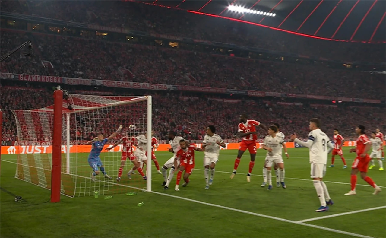 Аммо беш дақиқа ўтиб «Бавария» ҳисобни тенглаштирди ва умумий ҳисобда яна олдинга чиқиб олди. Венсан Компани жамоаси илк дақиқалардан прессинг уюштирди ва «Реал» футболчиларини хато қилишга мажбурлади. Мадридликлар босим остида тўпни майдон ташқарисига чиқариб юборди, Киммиҳ бурчакдан узатма берди, Лунин тўпга чиқишда хатога йўл қўйди ва Павлович бош билан у қўриқлаётган дарвозани ишғол этди.