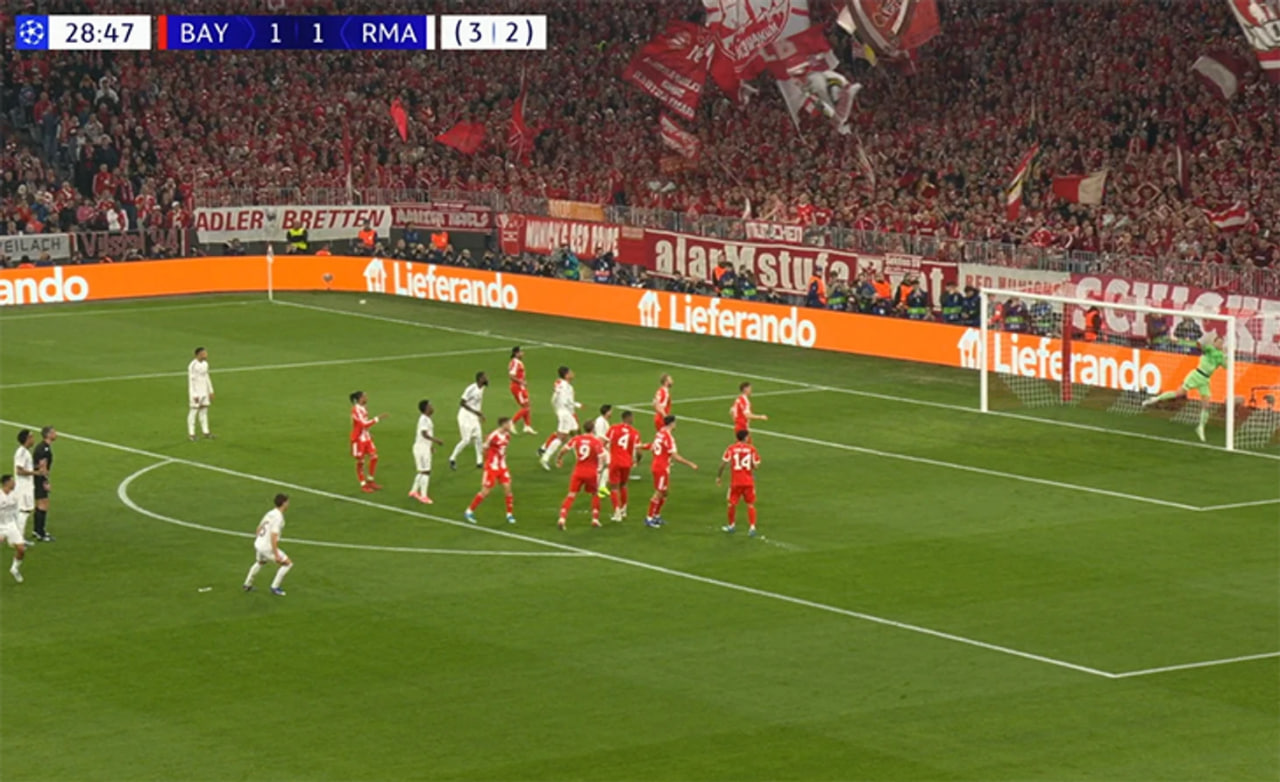 «Бавария» сон борасидаги устунликдан тезда фойдаланди. Диас Мусиала билан девор услубида ўйнади ва олис бурчакка қайтариб бўлмас зарба йўллади. Қўшимча дақиқаларда эса «Реал» яна бир гол ўтказиб юборди. Олисе «қаймоқранглилар»ни узил-кесил таслим этди.