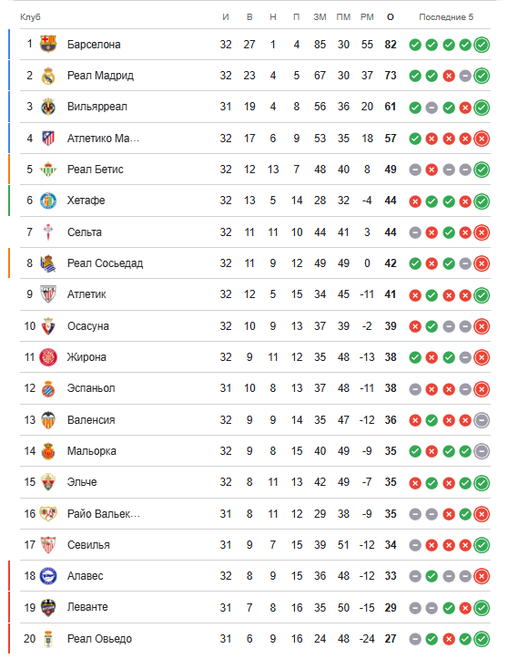 Минимал ғалабадан кейин «Барса» «Реал» билан тўққиз очколик фарқни сақлаб қолди. Чемпионлик масаласи жамоаларнинг 10 май кунги ўзаро ўйинигача ҳам ҳал бўлиши мумкин.