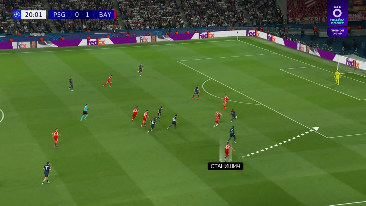 Бундан ташқари, меҳмонларда прессинг орқали тўпни олиб қўйганда, «ПСЖ»нинг мудофаа сафлари бузилиб кетишидан ҳам фойдаланиб, қанот ҳимоячилари ҳам навбатма-навбат ҳужумга қўшилди. Биринчи ҳолатда Йосип Станишич.