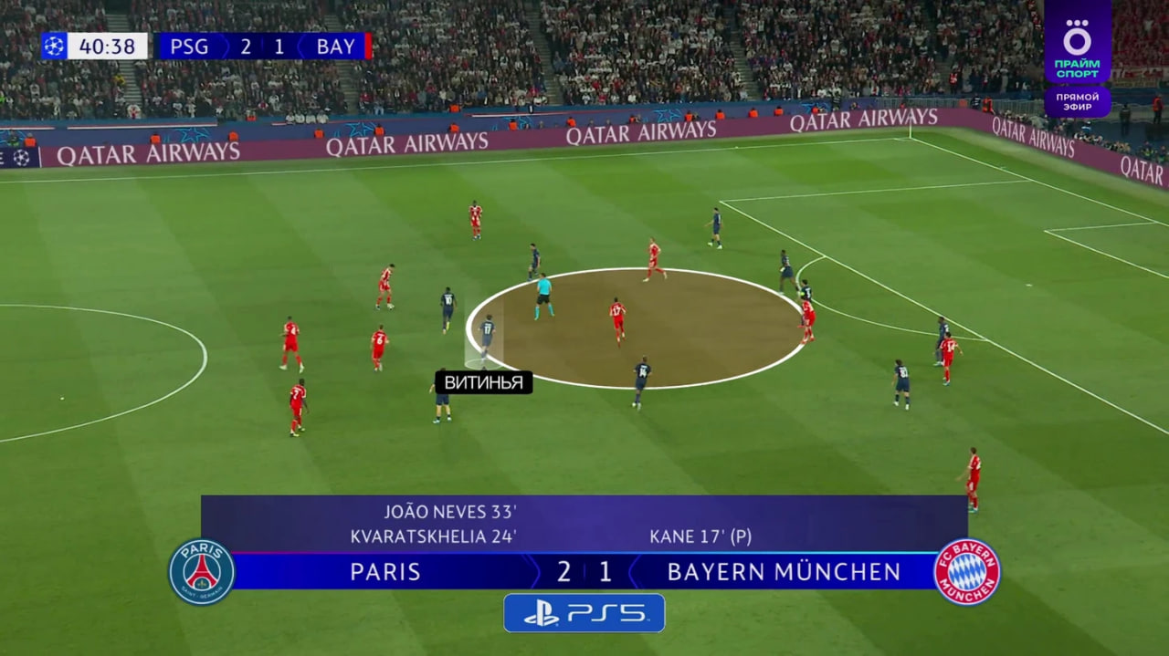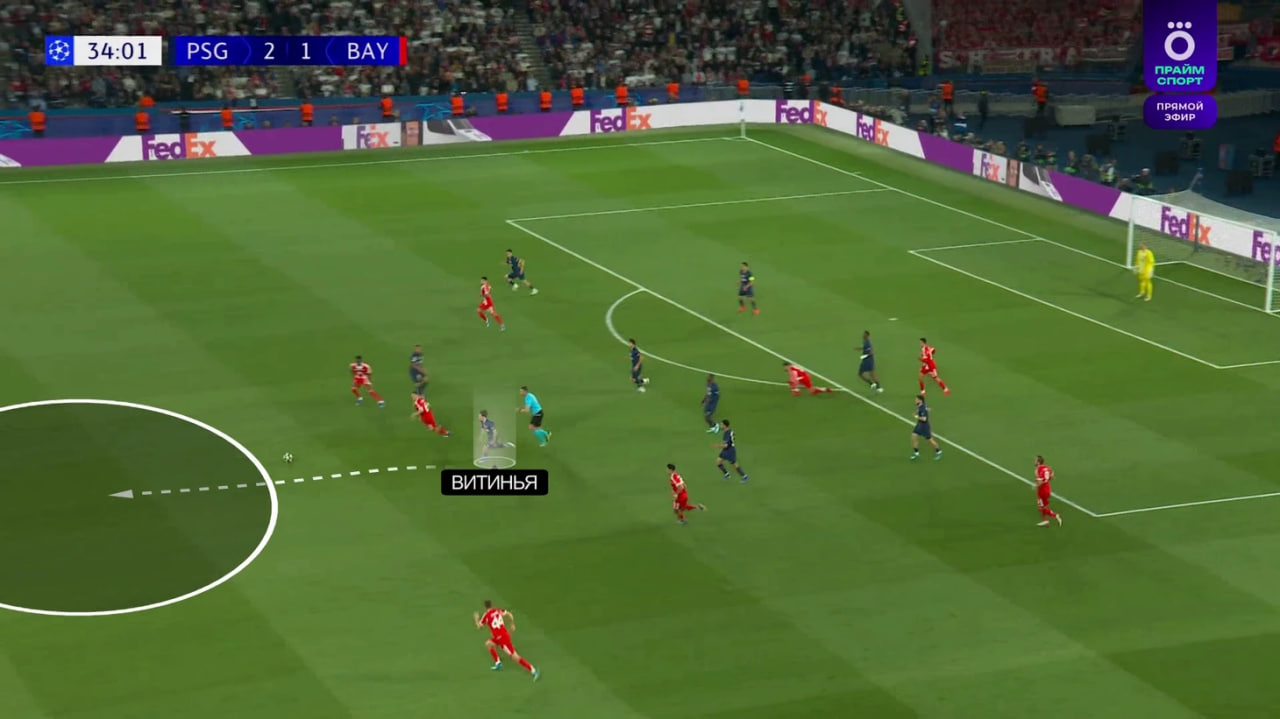 Витиня ўйинда атиги 48 та аниқ узатма берди, Киммиҳда – 50. Бошқа бирор оддий ўйинда рақамлар юздан ошган бўларди. Аммо бу «Бавария» учун ҳам, «ПСЖ» учун ҳам классик ўйин эмасди. Бу оқшом ўйин мулоҳазакор Витиня ва Киммиҳга эмас, балки фақат ва фақат олдинга ташланадиган тезкор Диас ва Хвичага асосланганди.