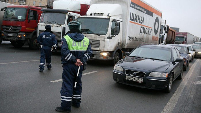 Юк ташувчи ҳайдовчилар томонидан тўсиб қўйилган Москвадаги кичик ҳалқа автомобиль йўлига ҳарбийлар бўлган юк машиналар йўл олди