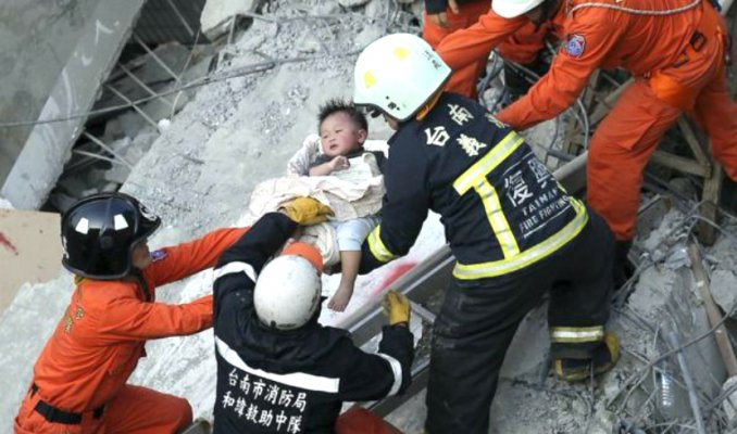 Олти ойлик қизча Тайванда қулаган бино тагида 30 соат қолиб кетгандан кейин қутқариб олинди