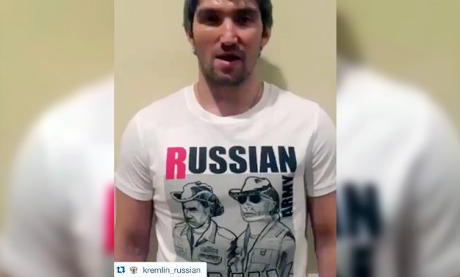 Хоккейчи Александр Овечкин Путин ва Шойгу тасвири туширилган футболкада кўринди