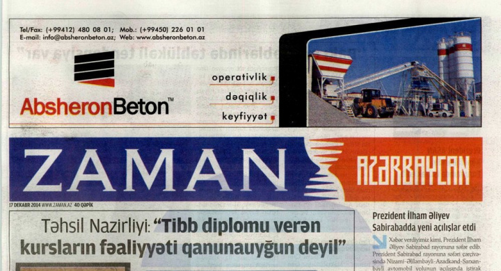 Озарбайжонда Zaman газетаси 25 йиллик фаолиятдан кейин фаолиятини тўхтатди.
