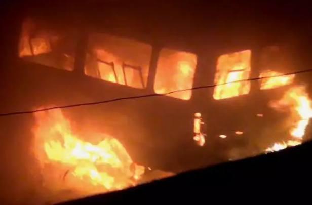 Ереванда полиция автобуси ёқиб юборилди