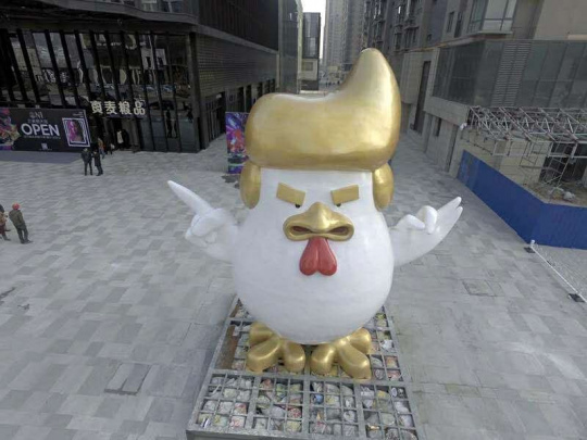 Хитойда Трампга ўхшаш хўроз ҳайкали ўрнатилди