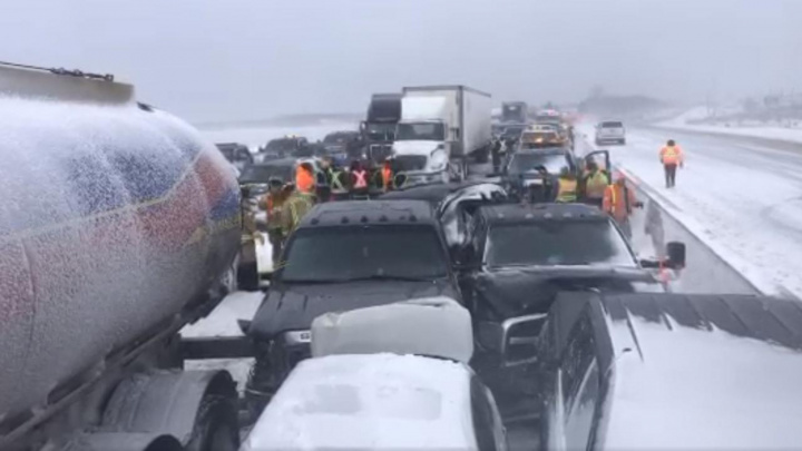Канададаги йўлда 70 та автомобиль тўқнашди