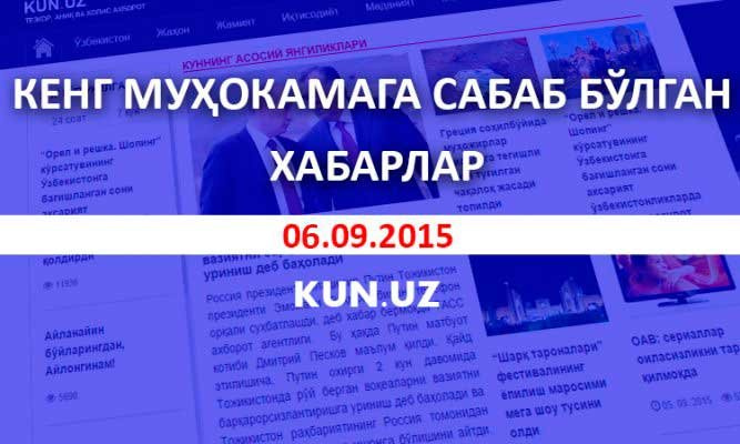 KUN.UZ дайжести: 6 сентябрда кенг муҳокамага сабаб бўлган хабарлар
