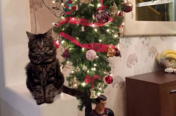 Британиялик оила Янги йил арчасини мушукдан ҳимоя қилиш учун уни шифтга ўрнатди