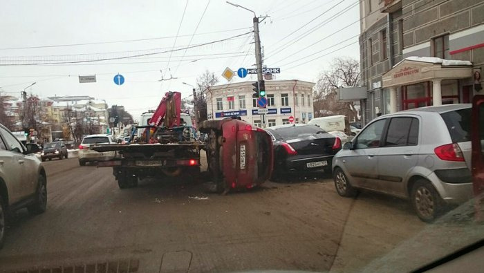 Эвакуатордан ағдарилиб кетган Lada Kalina йўл четидаги Jaguar’ни пачоқлади