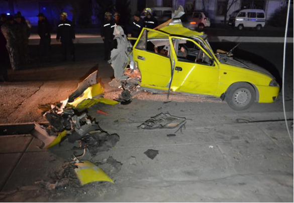Киракашнинг “Нексия” автомашинасидаги газ баллони портлаб кетди (фото)