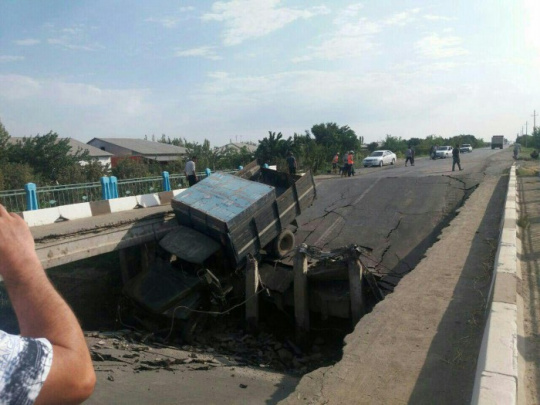 Фото: Хоразмда автомобиль кўприги қулаб тушди