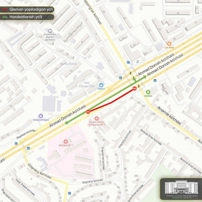 Юнусобод туманида Аҳмад Дониш кўчасининг айрим қисмлари вақтинча ёпилмоқда