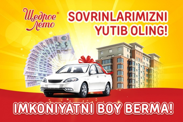 «Щедрое лето» савдо белгиси «Совға марафони» акцияси бошланганлигини эълон қилади