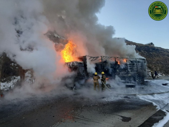 Қамчиқ довонида юк машинаси ёниб кетди