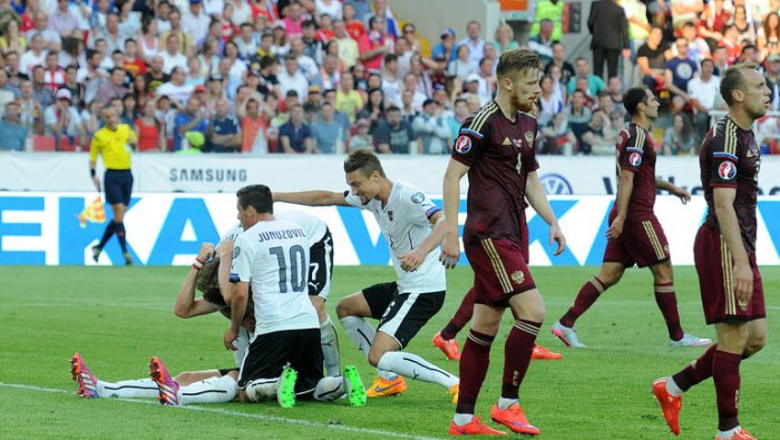 Евро-2016 саралашида Россия Австрияга ютқазиб, гуруҳдан чиқиш имкониятларини кескин пасайтирди
