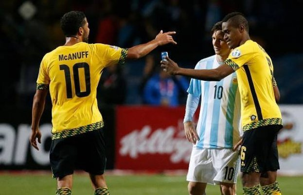 Ямайка терма жамоаси футболчиси Аргентина билан ўйиндан кейин Месси билан майдонда селфига тушди