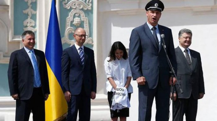 Кличко ўзининг фуражкаси билан Порошенко ва Яценюкнинг кулгисини қистатди