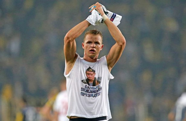 "Локомотив" ўз футболчисини Путинни расми туширилган футболкани кўрсатгани учун жаримага тортди