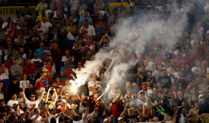 Фотожамланма: Россия — Англия ўйинидан кейин трибунадаги тартибсизликлар