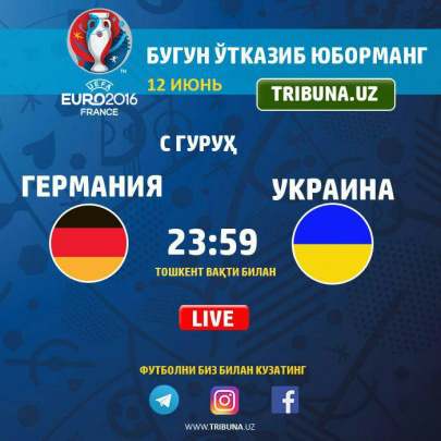 Европа чемпионатида учинчи кун. Германия ва Украина ўйинидан онлайн трансляция