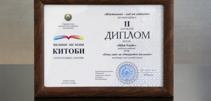 «Очиқ хат» китоби «Йилнинг энг яхши китоби» танлови ғолиби бўлди