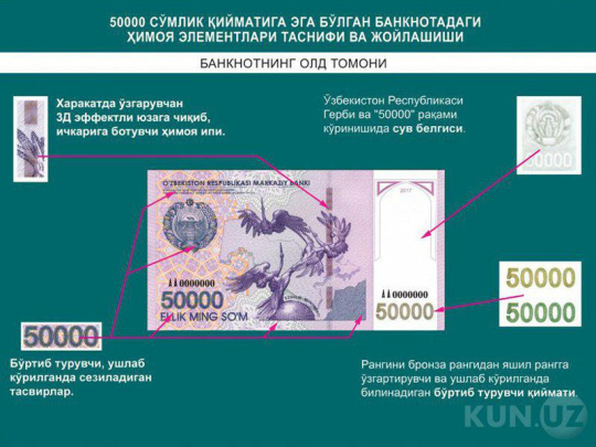 Фото: Ўзбекистонда 50 минг сўмлик банкнотлар муомалага киритилмоқда