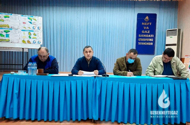 «Ўзбекнефтгаз»: Бошқарув раиси бошчилигида «Кўкдумалоқ» конида табиий газ ва нефть қазиб чиқариш масаласида йиғилиш ўтказилди