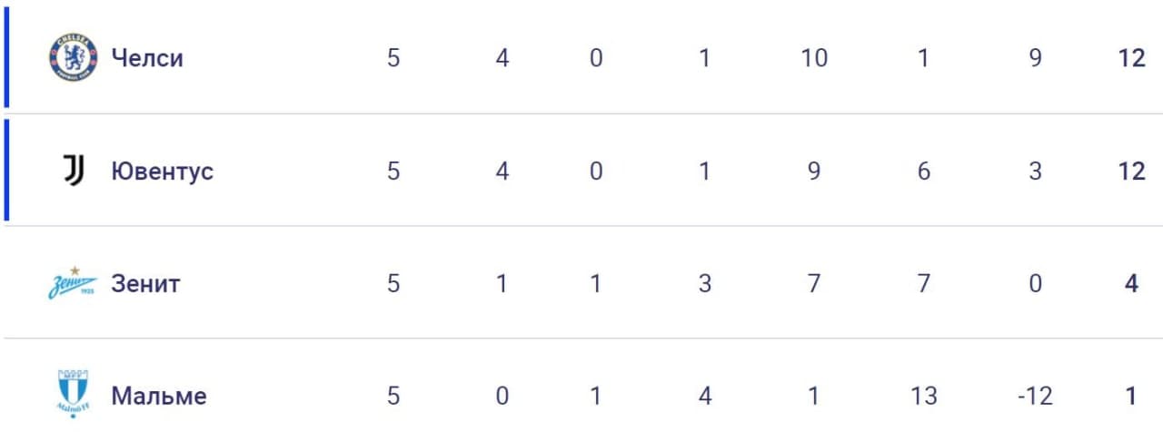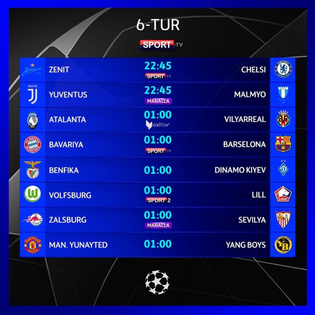 • «Yuventus» 1/8 finalga chiqqan. Turin klubi «Malmyo»dan ustun kelsa va «Chelsi» ochko yo‘qotsa, italiyaliklar 1-o‘rinni egallaydi.