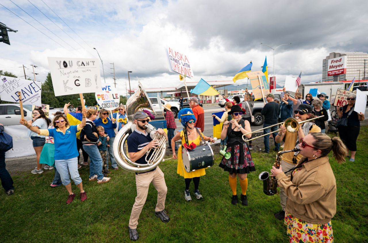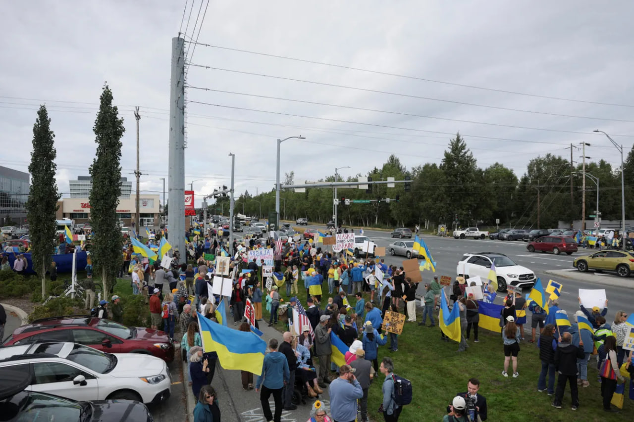 Tramp va Putinning Ankorijdagi uchrashuvi arafasida Ukrainani qo‘llab-quvvatlash bo‘yicha aksiyalar tashkillashtirildi. Stand UP Alaska jamoat tashkiloti rahbari Erin Jyekson-Hill sammitdan uch kun oldin «Ukrinform» agentligi bilan suhbatda Putin «harbiy jinoyatchi va unga Amerika zaminida joy yo‘qligi»ni aytgandi. «Biz avtoritar diktatorlar shtatimizga taklif etilishini qo‘llab-quvvatlamaymiz», – deya ta’kidlagandi u.