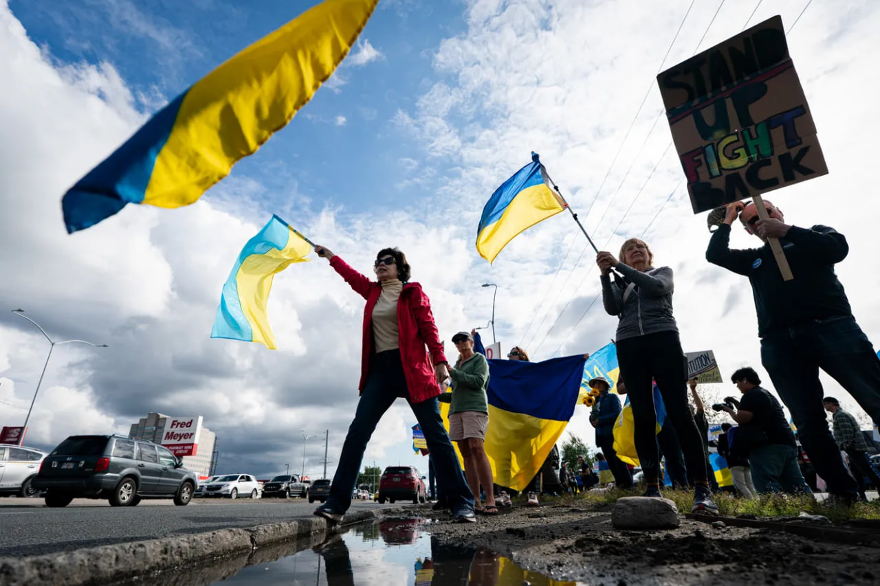 Ankorijda yuzlab odamlar Tramp va Putin muzokaralari oldidan Kiyevni qo‘llab-quvvatlash uchun namoyishga chiqdi.