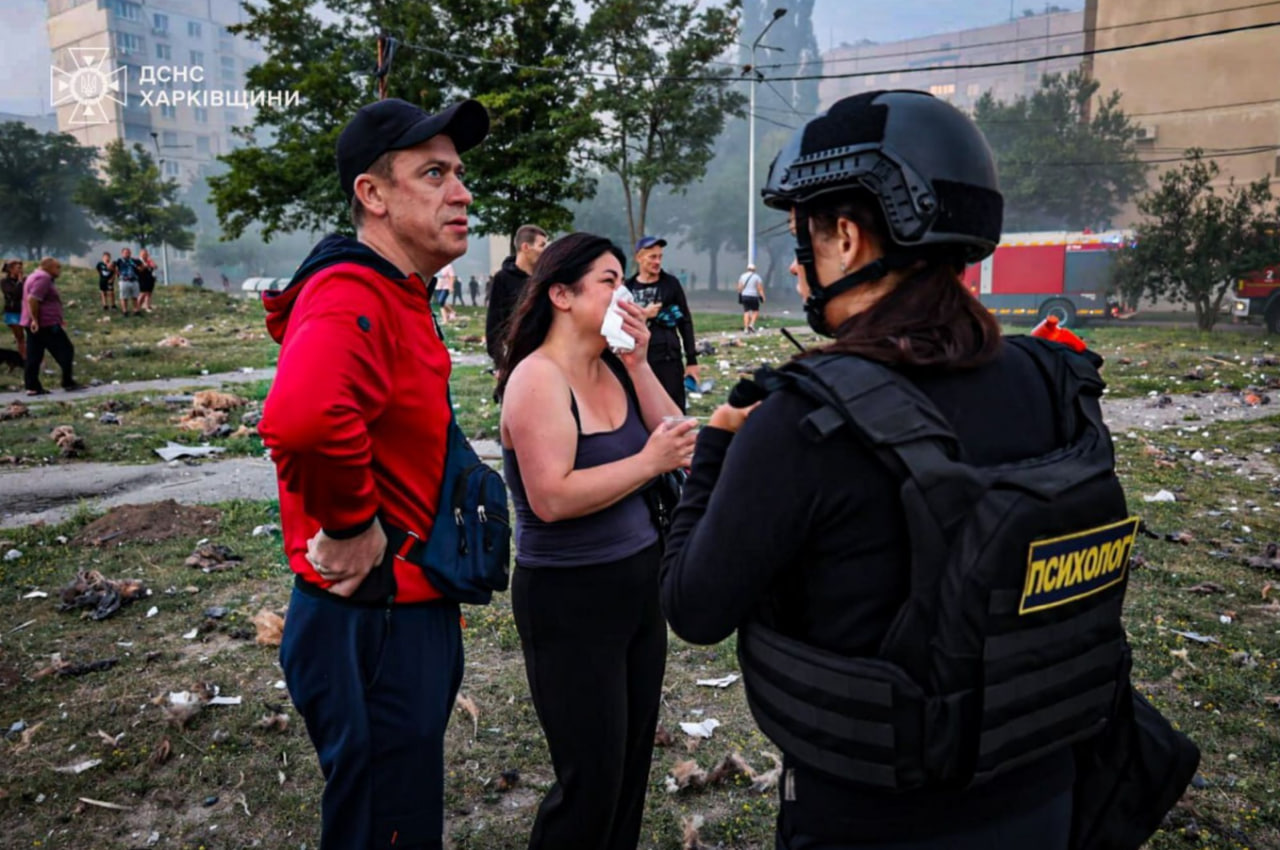 18 avgustga o‘tar kechasi Xarkivda Rossiya dronlari Sanoat rayonidagi besh qavatli uyga kelib urilgan. So‘nggi ma’lumotlarga ko‘ra, yetti kishi halok bo‘lgan, shundan besh nafari bir oila a’zolari bo‘lgan – ota, ona, 16 yoshli o‘smir, bir yarim yoshli qizcha va buvi halok bo‘lgan. Oblast ma’muriyati rahbari Oleg Sinegubovning ma’lum qilishicha, kamida 30 kishi jarohatlangan. Xarkiv shahri meri Igor Terexov erta tongda, odamlar uxlab yotgan paytda turar joy binosini mo‘ljallab zarba berilgani haqida yozdi. «Toza terror. Izohi ham, oqlovi ham bo‘lmagan terror», – dedi u telegram-kanalida. 18 avgust Xarkiv oblastida motam kuni deb e’lon qilindi. Quyida hujum joyida olingan kadrlar keltiriladi.