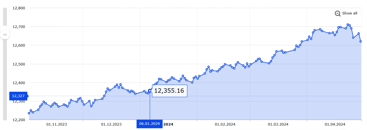 Umuman olganda, dollar kursi ketma-ket uchinchi savdo kuni so‘mga nisbatan pasayib, deyarli 168 so‘mga (1,3 foiz) — 12 525 so‘mdan 12 357 so‘mga arzonlashdi. Bu – 2024 yilning 6 yanvaridan (12 355 so‘m) beri qayd etilgan eng past ko‘rsatkich.