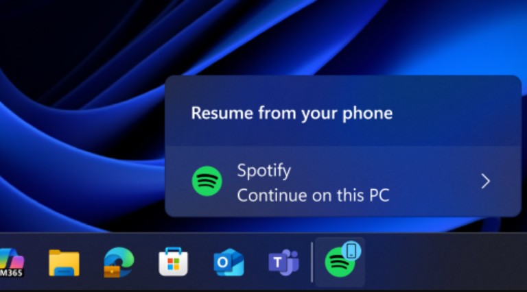 Hozirda funksiya Windows Insider dasturi ishtirokchilari tomonidan sinovdan o‘tkazilmoqda. Sinov ilovasi sifatida Spotify musiqa servisi tanlangan: foydalanuvchi Android smartfonida biror qo‘shiqni tinglay boshlaganida unga qo‘shiqni o‘z kompyuterida tinglash taklif qilinadi. Foydalanuvchi taklifga rozilik bildirsa, Windows avtomatik ravishda Spotify ilovasining kompyuter versiyasini ishga tushiradi yoki uni o‘rnatishni taklif qiladi.
