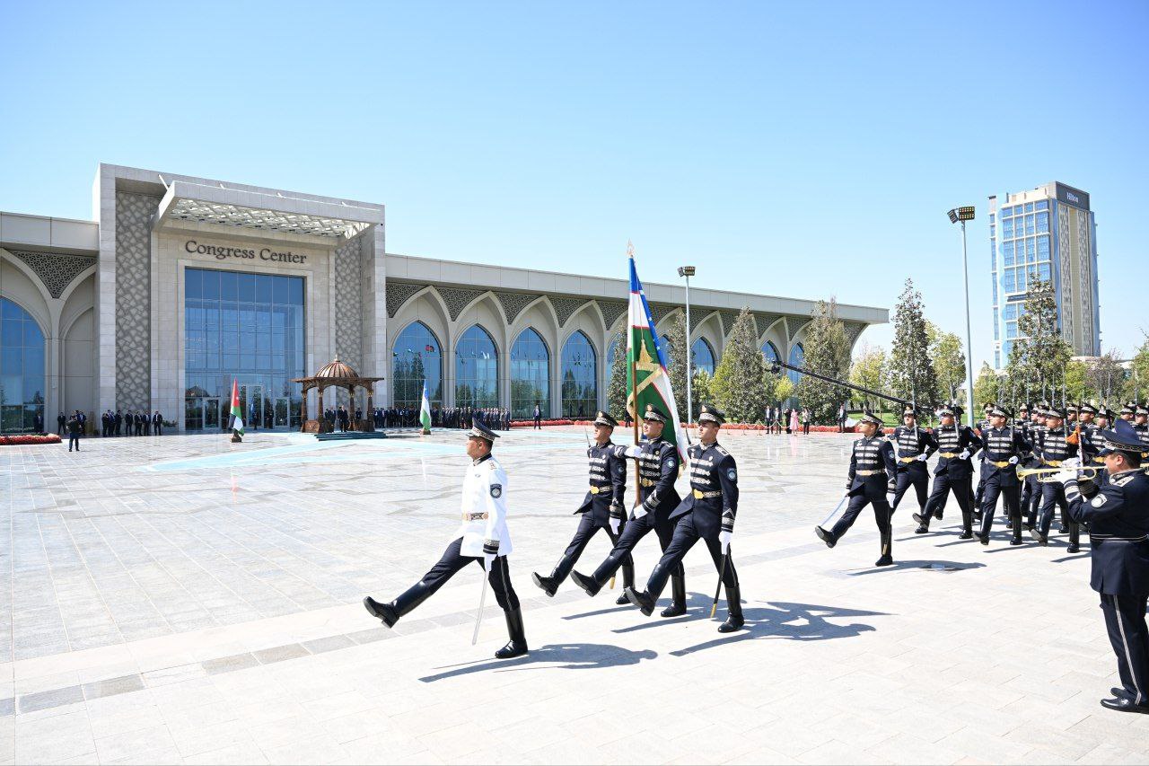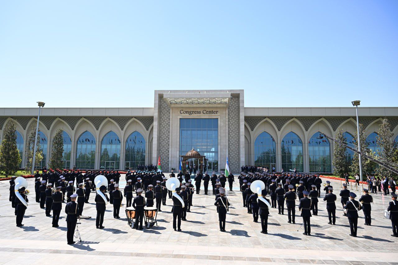 Kongress markazi binosi oldidagi maydonda faxriy qorovul saf tortdi. O‘zbekiston prezidenti oliy martabali mehmonni samimiy qarshi olib, shohsupaga taklif etdi.