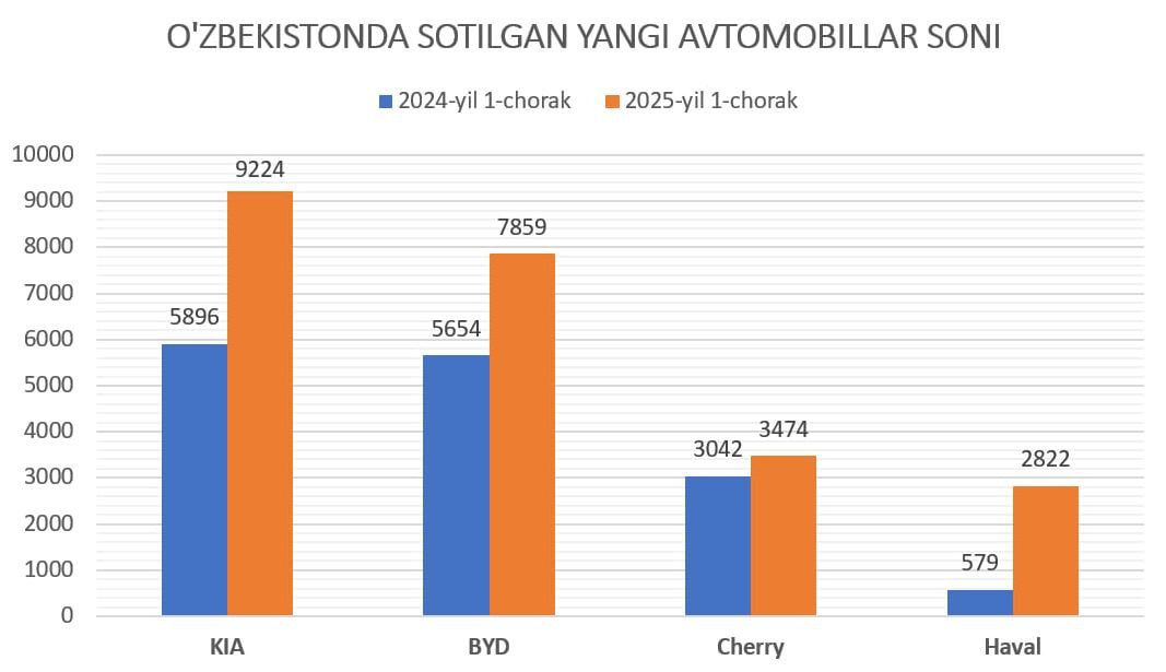 Birinchidan, ichki bozorda zaif bo‘lsa-da raqobat va tanlov imkoniyati paydo bo‘la boshladi. Masalan, 2024 va 2025 yillarning dastlabki 5 oyini taqqoslaganda, Kia sotuvi 56 foizga, BYD sotuvi 39 foizga, Cherry sotuvi 14 foizga, Haval sotuvi esa qariyb 4 barobarga oshgan. Ya’ni shartli Tracker olishni reja qilgan iste’molchi oldida Kia Sonet tanlovi ham bor.