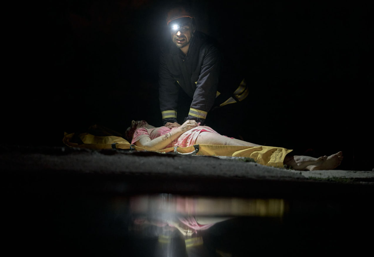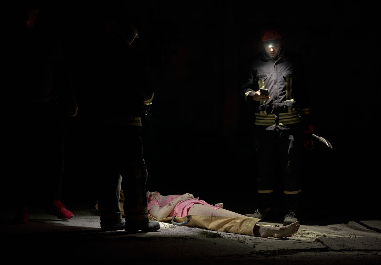 Halok bo‘lganlarning jasadlari yonida ishlayotgan politsiyachilar