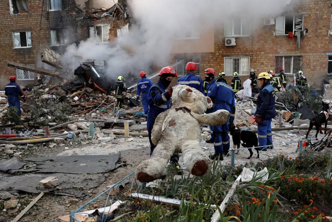 Ukraina prezidenti Volodimir Zelenskiy Rossiya «muzokaralar stoli o‘rniga ballistikani, urushni tugatish o‘rniga qotilliklarni davom ettirishni tanlayotgani»ni aytdi. Kiyevda 29 avgust Rossiya hujumi qurbonlari xotirasiga motam kuni deb e’lon qilindi. Quyida RF qurolli kuchlarining Kiyevga zarbasi oqibatlari aks etgan suratlar.