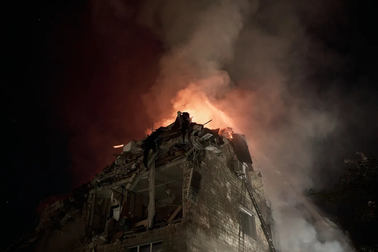 Rossiya raketasi besh qavatli uyning pod’yezdiga kelib tushgan. Bino boshdan oyoq vayron bo‘lgan. 2025 yil 28 avgust
