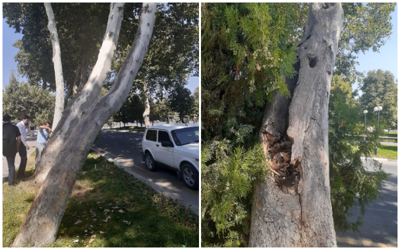 Samarqandda chinorlar kesildi: rasmiylar daraxtlar umrini o‘tab bo‘lganini iddao qilmoqda