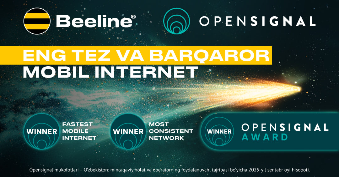 Opensignal mustaqil tahliliy kompaniyasi 2025 yilning birinchi yarmi natijalarini e’lon qildi: Beeline Uzbekistan mobil interneti eng tez va tarmoq sifati eng barqaror bo‘lgan raqamli operator deb topildi. Kompaniya ikkita nominatsiya bo‘yicha g‘olib bo‘ldi - "Yuklab olish tezligi tajribasi" (Download Speed Experience) va "Barqaror sifat" (Consistent Quality) shuningdek, "Yuklash tezligi" (Upload Speed) nominatsiyasida ham g‘olib bo‘ldi.