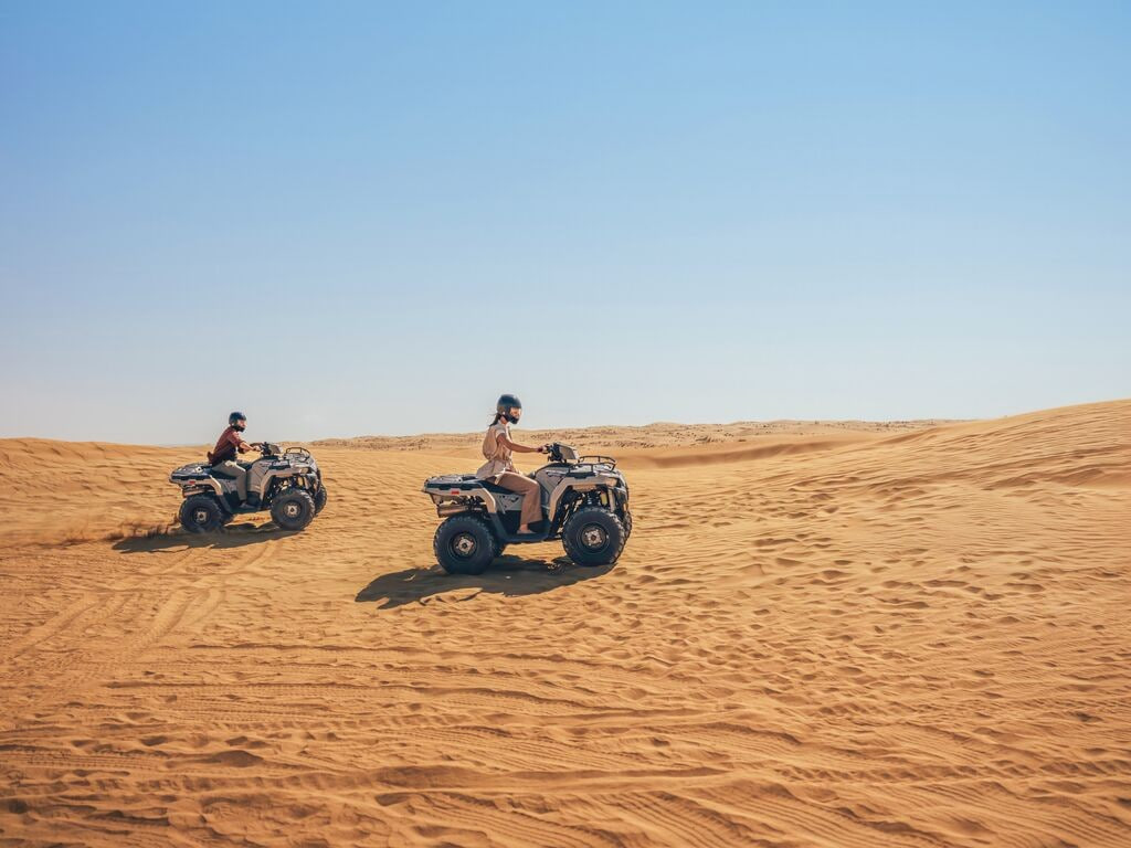 ● Sahroda safari – qudratli va to‘liq yuritmali jipda yoki tuyada qumtepaliklar bo‘ylab sayr qiling, lochinlar bilan fotosuratga tushing va kuningizni an’anaviy raqslarni tomosha qilgan holda yulduzli osmon ostidagi kechki taom bilan yakunlang.