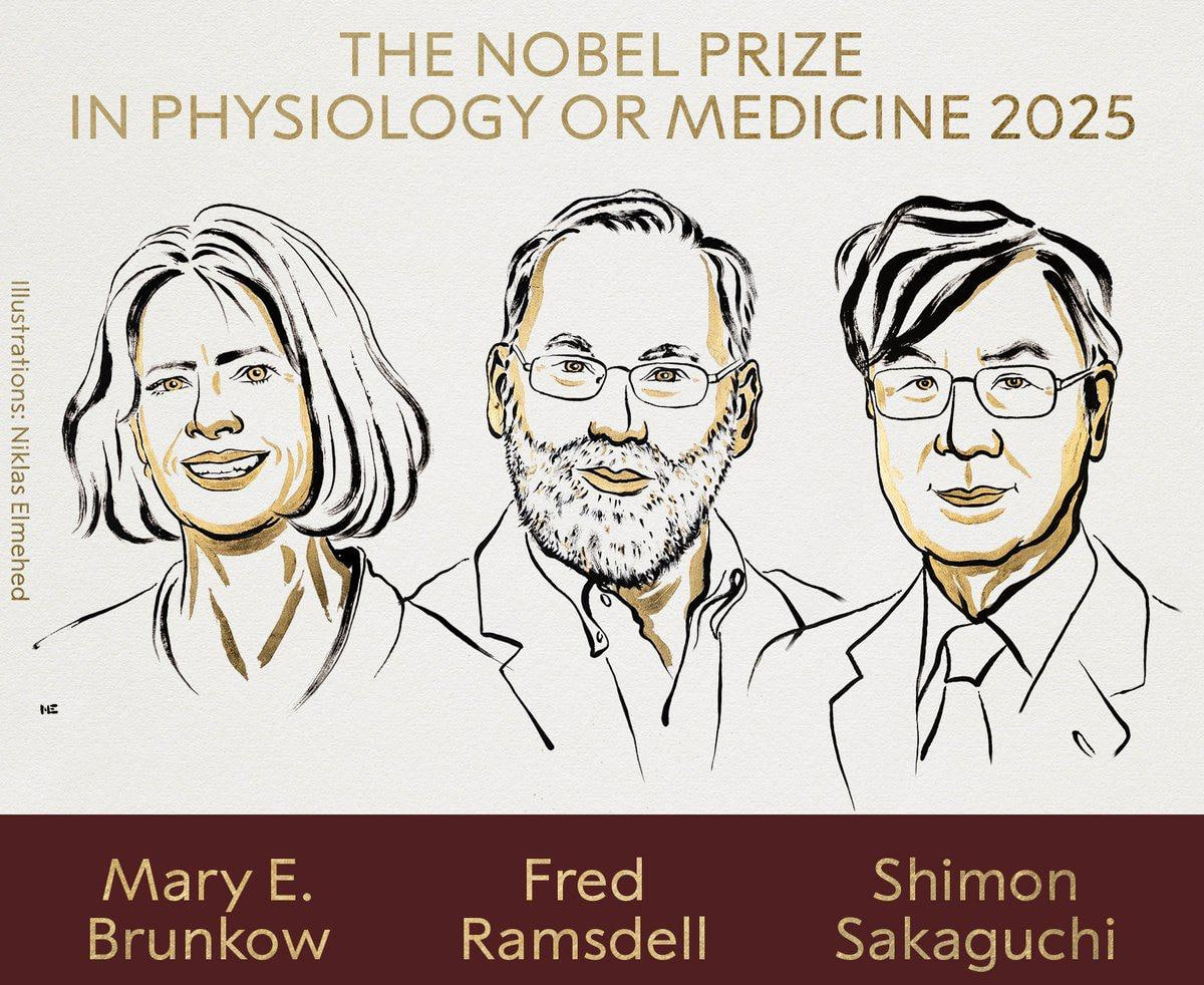 Fiziologiya yoki tibbiyot bo‘yicha 2025 yilgi Nobel mukofoti Meri Brunkou (AQSh), Fred Ramsdell (AQSh) va Shimon Sakaguchiga (Yaponiya) berildi. Ular “periferik immunologik tolerantlik bo‘yicha kashfiyotlar uchun” mukofotga loyiq ko‘rilgan.