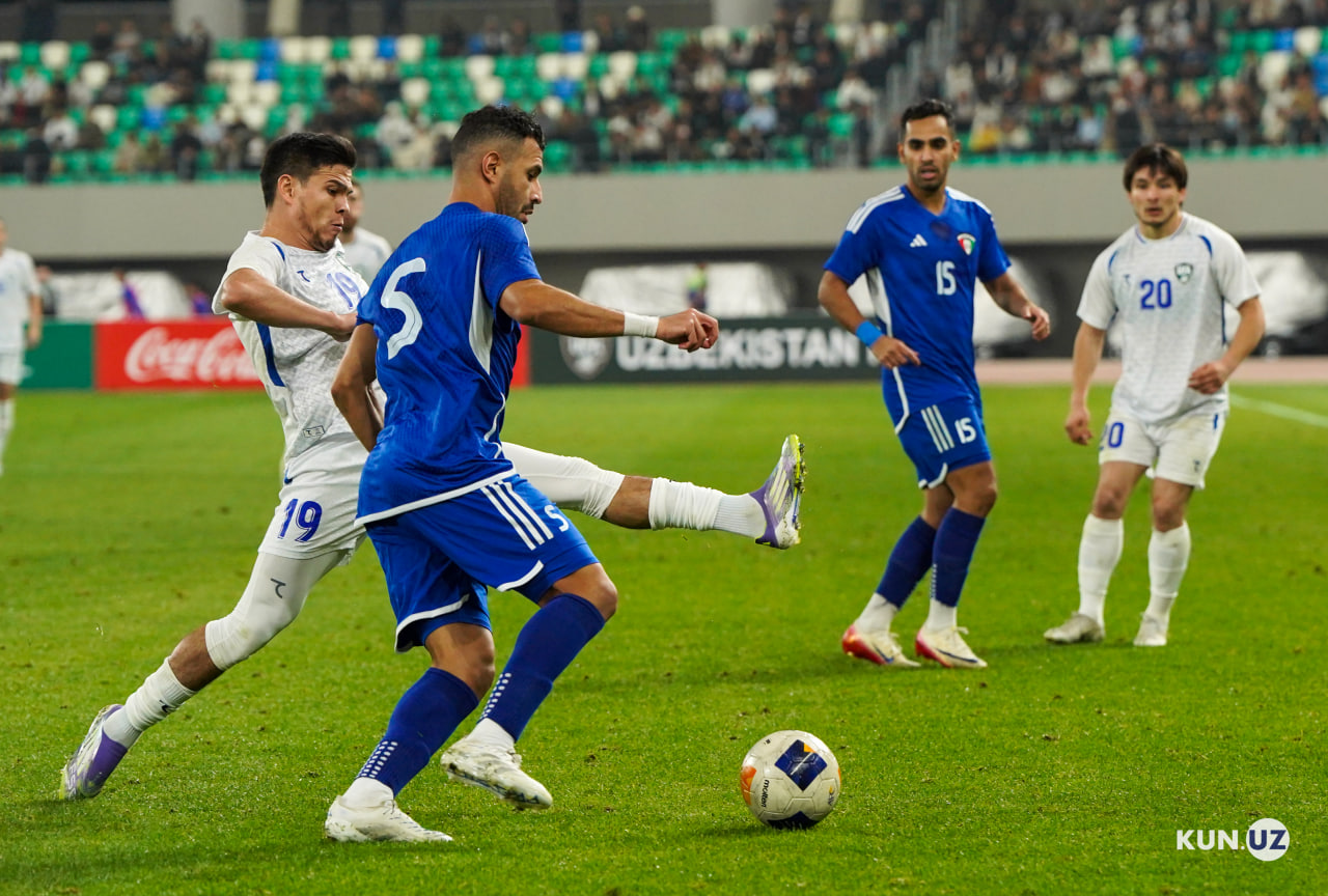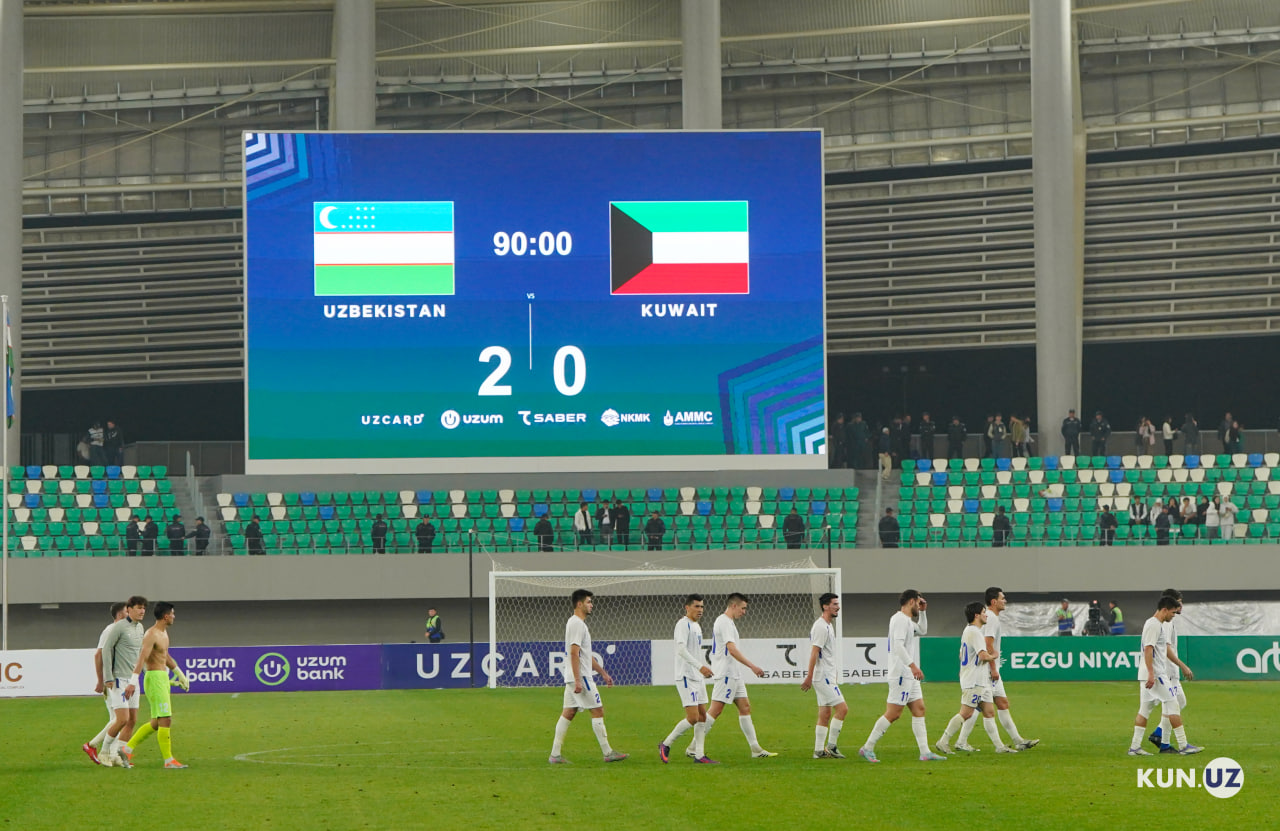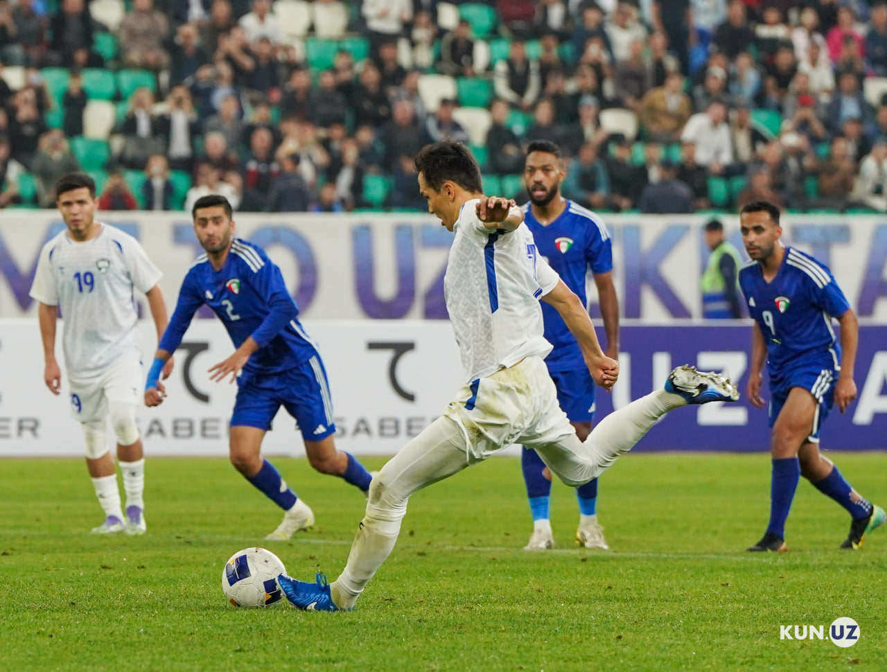 O‘zbekiston milliy jamoasining Toshkentdagi «Olimpiya» stadionida Kuvaytni mag‘lub etgan o‘yinidan fotogalereya.