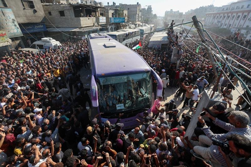13 oktabr kuni AQSh vositachiligida tuzilgan sulh doirasida ozod qilingan falastinlik mahbuslarni qarshi olish uchun G‘arbiy sohil va G‘azoda to‘plangan odamlarga to‘ldi. Ular avtobuslarga yopirilib, o‘zining qarindoshlarini ko‘z yoshlar bilan kutib oldi.