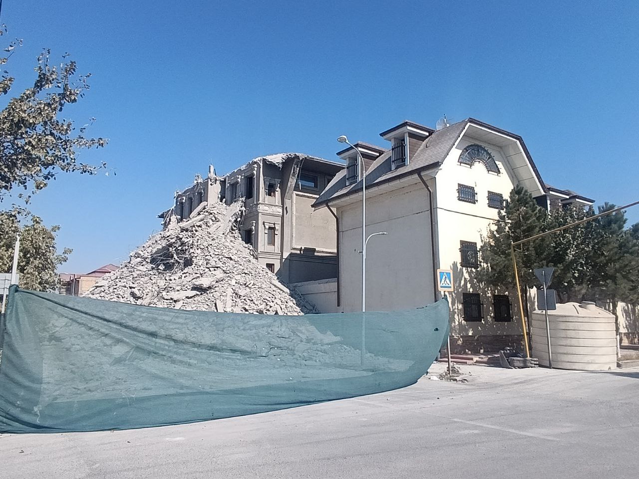 Samarqand tumanida fuqaro Furqat Xalilov tomonidan qurilgan va seysmik jihatdan xavfli deb topilgan 12 qavatli binoni buzish jarayoni davom etmoqda.