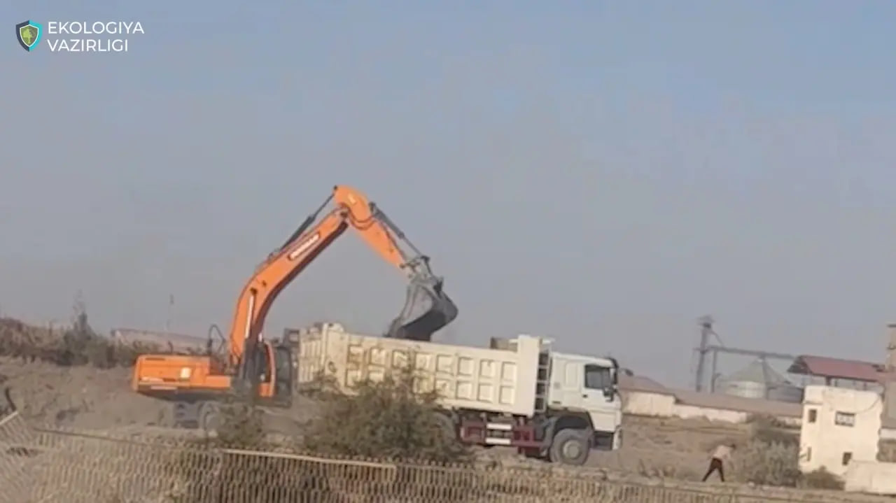 O‘rganish davomida fermer xo‘jaligiga tegishli ekskavator va yuk mashinasi yordamida Qoradaryo daryosidan qum-shag‘al aralashmasi noqonuniy ravishda qazib olingani aniqlandi.
