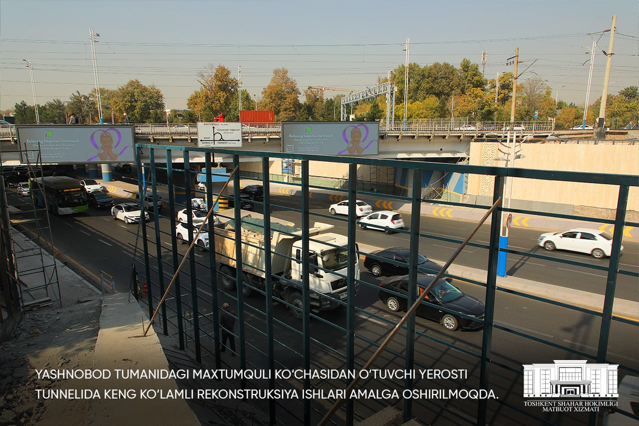 Yashnobod tumanidagi Maxtumquli ko‘chasidan o‘tuvchi yerosti tunnelida rekonstruksiya ishlari keng ko‘lamda olib borilmoqda.