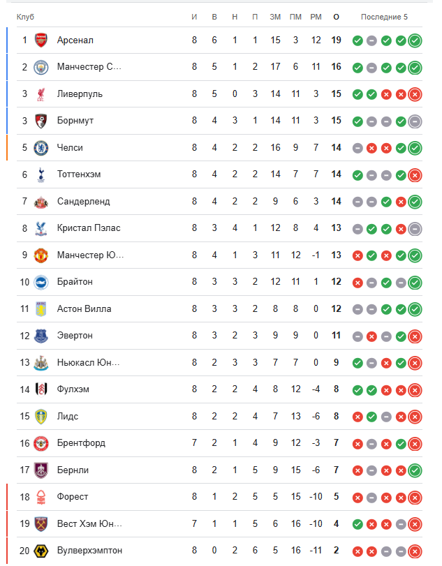 Yaqingacha mersisaydliklar besh ochkolik farq bilan birinchi o‘rinda borayotgandi. Endi esa peshqadam «Arsenal» bilan oradagi farq to‘rt ochkoni tashkil qilmoqda. «Manchester Yunayted» Amorim davrida ilk bor APLda qatorasiga ikki o‘yinda g‘alaba qozondi. Bundan tashqari, «MYu» «Enfild»da to‘qqiz yildan buyon ilk bor g‘alabaga erishdi.